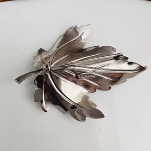 Vintage Giovanni Signed Maple Leaf Brooch Silver Plated Mid Century Modern 4023