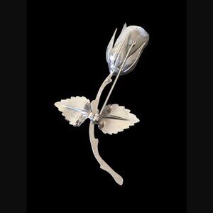 Vintage Giovanni Silver Tone 2.5" Long Rose Brooch Pin