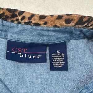 Vintage Giraffe Denim Shirt Women’s Size 2X Blue Safari Embroidered Medium Wash