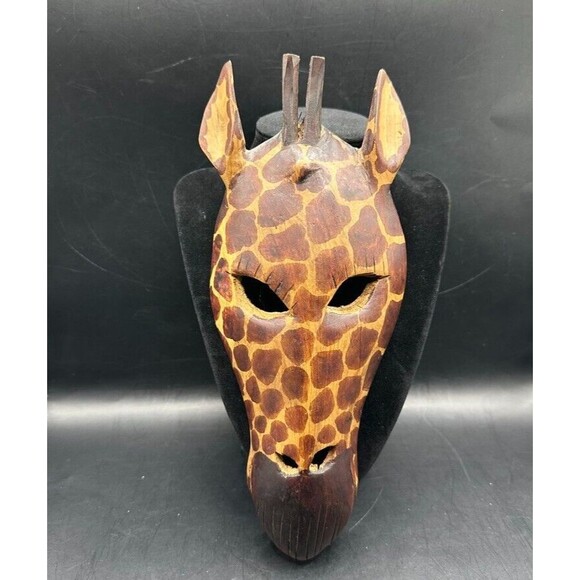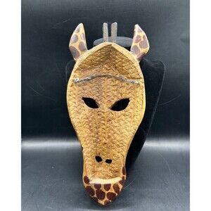 Vintage Giraffe Mask Hand Carved Wood Painted African Wall Decor Art Brown