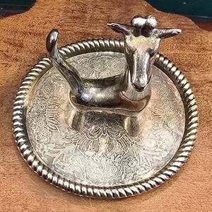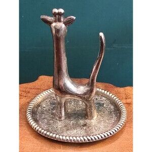Vintage Giraffe Silverplate Ring Holder 3.75"x3.25"x3" Made In Hong Kong