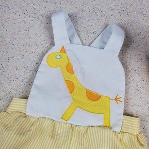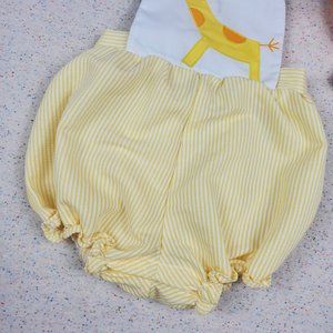Vintage Nanette brand seersucker yellow sunsuit and jacket set with giraffes! Perfect condition and insanely cute