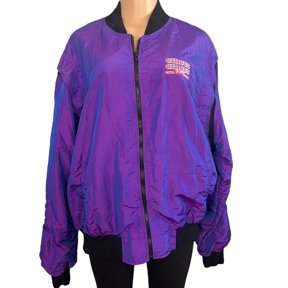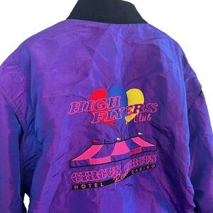 Retro Vintage 90d Girard Circus Long Sleeve Windbreaker Jacket High Flyers Purple in size XL.