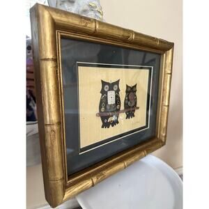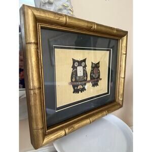 Vintage Girard Wood gold Framed Watch Parts "Owl" Picture Glass signed rare 12”