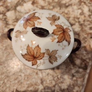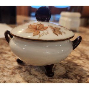 Vintage Giraud Limoges France Lidded Trinket Bowl With Autumn Leaf Design & Orna