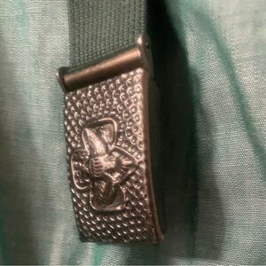 Set of two Youth 1960’s Girl Scout & Brownie Uniform Dresses. Girl Scout Uniform has tie & belt. Brownie uniform has tie. Some wear on the Brownie Uniform (see photo). Very slight discoloration on the Girl Scout Uniform Collar (see photo).