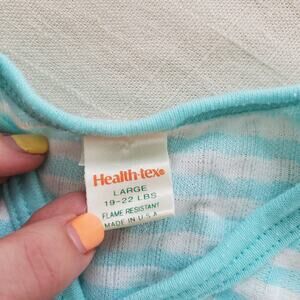 Vintage bundle of girl's shirts! All fit the same size range. Carter's, Fisher Price, & Healthtex. Ducks at the beach on one, animals in a parachute on another! Great basics for play or under overalls. Note the blue-green shirt has very slight discoloration to neckline and possibly chest - please see all photos for condition and measurements Size: fits 6-12 months