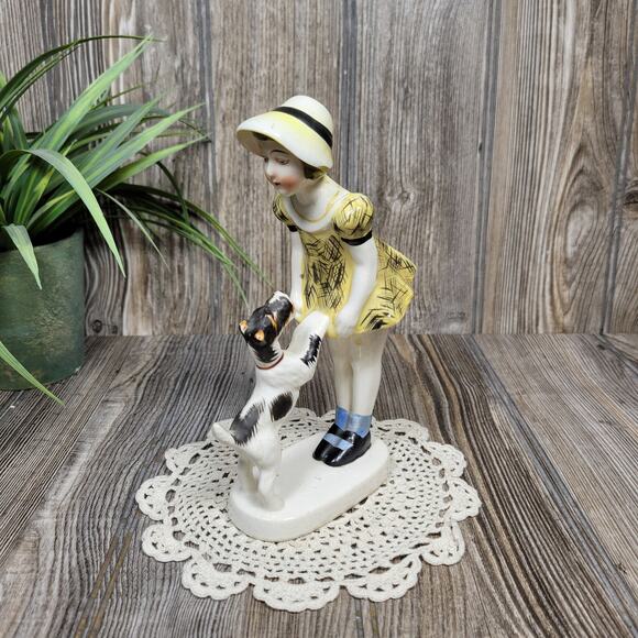 Vintage Girl and Schnauzer Airedale Dog Figurine Made in Japan