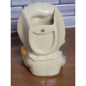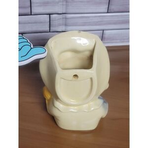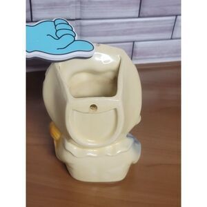 This is a hard to find item. It is a charming way to display your plant or even to hold small items such as makeup brushes. Measures approximately 7 inches tall. Has a chip and a small crack. The inside shows wear from use. Flaws are visible in photos. Preview pictures for a visual description before purchasing.