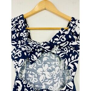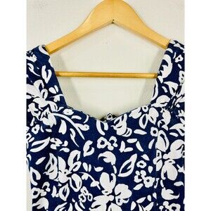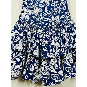 Navy Blue with White Floral Design, Tiered Ruffle Dress by Vintage Designer Amy Too