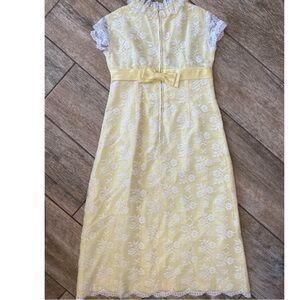 Vintage Girls Children’s Lace Yellow Handmade Long Dress Size 7 1960s Style