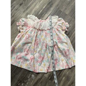 Vintage Girls Dress 12 Months Party Floral Pink Blue Bib Lace Flower 80s 90s