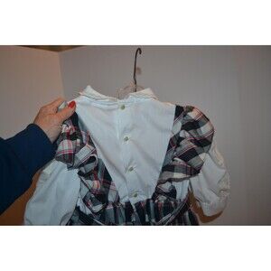 Vintage dress in beautiful condition. The cotton dress is precious. Timeless style, back buttons, bow, collar and puff sleeves. Full skirt. Eyelet lace, full skirt and custom created. Oh the time it took to create this. Crinoline under.