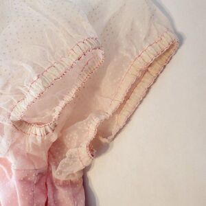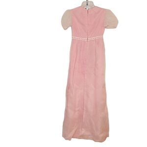Vintage Girls Dress M Handmade Sheer Flocked Polka Dot Pink Nylon Short Sleeve