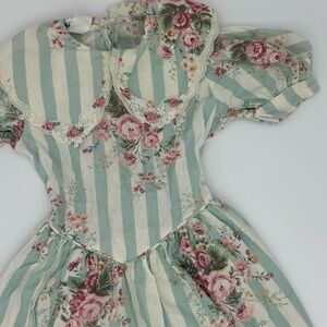 Charming kids dress with a floral and striped design. Perfect for special occasions.