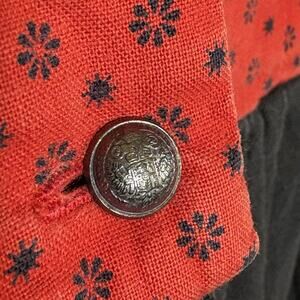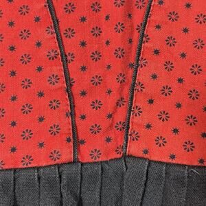 * Top is Red and black floral print with dark silver / gunmetal buttons, and black piping on neck, arms and back