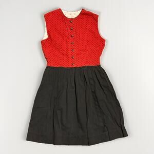 Vintage Girl's Drindl Dress Red Black Floral Der Kinderladen 152 Sz 10/12
