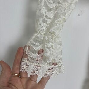 Vintage Girl's First Communion Cream Tiered All Lace Attached Necklace Dress S/M