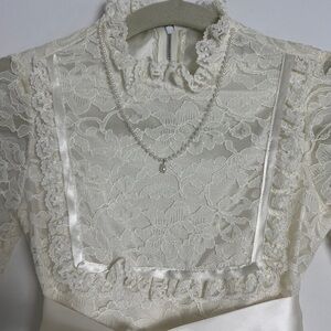 Vintage Girl's First Communion Cream Tiered All Lace Attached Necklace Dress S/M