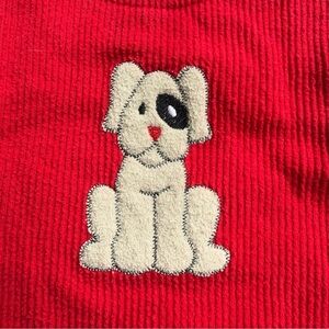 Vintage Girls Great Escape Sleeveless Red Corduroy Dog Patch Dress 5 USA Made