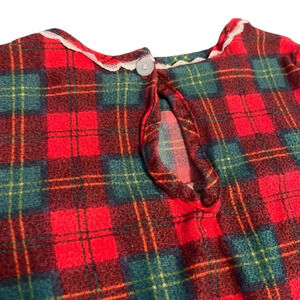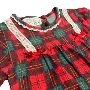 Vintage Girls Red Plaid Holiday Dress โ Lace Trim, Bows, Ruffle Hem Size 4