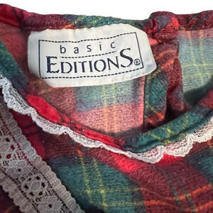 Get cozy and classic this season with this vintage plaid holiday dress by Basic Editions. Features timeless red and green tartan plaid with sweet details: white lace trim, dainty red bows, ruffle hem, and a keyhole back with button closure. Perfect for Christmas photos, special occasions, or twirling in front of the tree.
