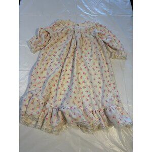 Vintage Girls White Pink Floral Nightgown Gown Infant Size 12M Lace Victorian