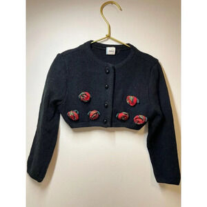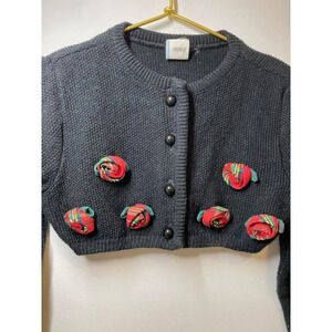 Vintage Girls sweater shrug cardigan rose appliqué size 5