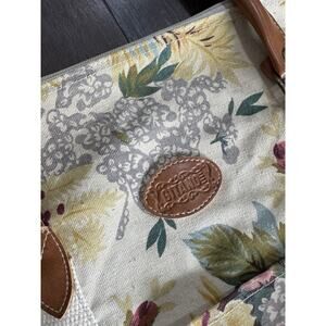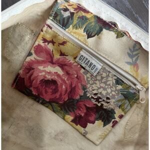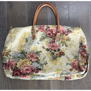 Vintage Gitano Floral Canvas Duffle Bag Weekender Large Tapestry Leather Handle