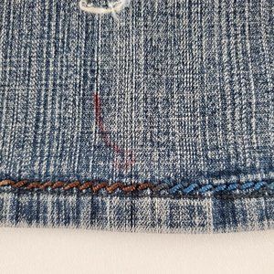 very unique and colorful stitching see up close photo. heavy heel wear and staining seen in photos. also a spot of red marking otherwise very good condition. cut and style estimated so please see photos for measurements