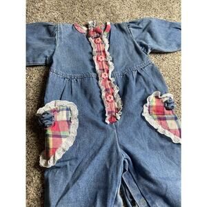 Vintage Gitano Kids Romper Girls 18M Blue Denim Jean Hearts Floral Bows 90s