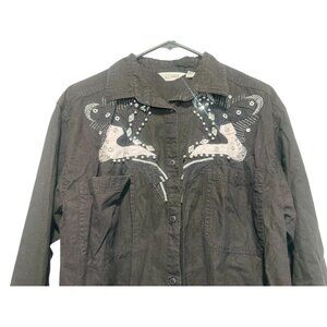 Vintage Gitano Western Beaded Shirt Womens medium Black Collared Cowgirl Rodeo