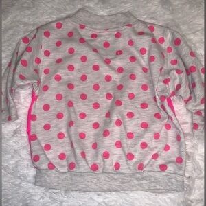 Vintage Gitano sweatshirt. Girls size 3T. There is a small stain on the back of one sleeve. Hot pink with polka dot sleeves. Multi textured. The front is windbreak material. Awesome find!