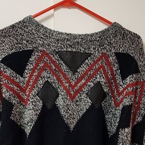 Vintage Gitano mens large grey diamond pattern sweater leather patch western y2k