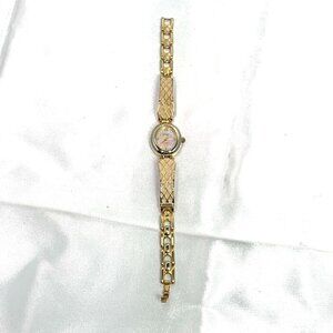 Vintage Gitanoe Womens Gold Tone Mother of Pearl Quartz Watch Diamond Accents