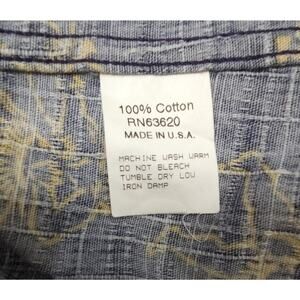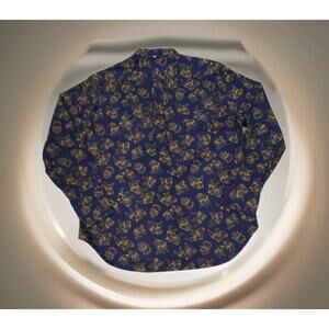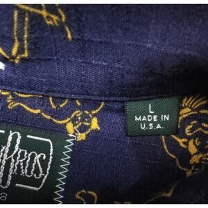 The Vintage Gitman Brothers Dance Brushed Cotton Shirt in size L is a classic button-up shirt featuring a graphic print design in blue. Made of woven cotton, this shirt has long sleeves and a collared neckline with a button-down style. Perfect for travel, parties, or casual occasions, this shirt is machine washable and suitable for all seasons. With accents like buttons and a retro theme, this USA-made shirt offers a timeless and easy-care option for men looking to add a touch of vintage style to their wardrobe.
