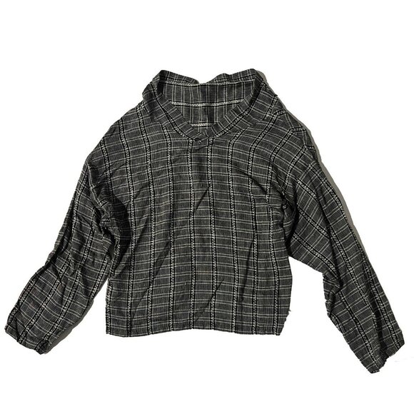 Vintage Giuseppe Women Black Striped Long Sleeve Open Neck Shirt Size Large