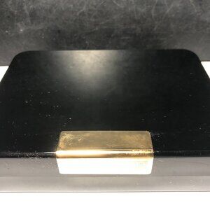 Vintage Givenchy Bijoux - Paris - New York - Black Lacquered Jewelry Box with Brass grip. Comes in outer cardboard gift box. 5 1/2" x 4" x 1 1/2". Not sure what came in this. There are 4 separate compartments.