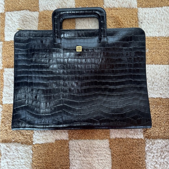 Vintage Givenchy Black Crocodile-Embossed Business Bag