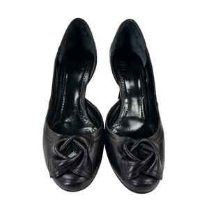 Vintage Givenchy Black Leather Flower Closed Toe Womens 36.5 / US 6.5 AS IS