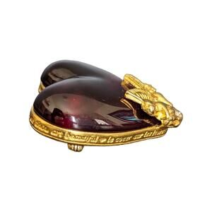 Vintage Givenchy Cherub Lucite Heart Brooch Jewelry RARE Rhinestone Pin Gold Red