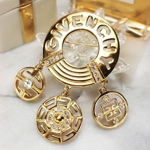 ⚜️Vintage Givenchy Crystal Encrusted Logo Brooch ✨