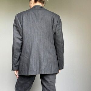 Vintage Givenchy Dark Gray Striped Oversized Wool Blazer Preppy Sport Coat 40R