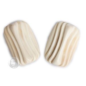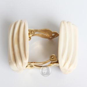 Preowned, authentic, vintage Givenchy earrings, likely made in the late 1960s. Made from a bone-colored resin, these abstract deco style earrings are carved and feac ture gold metal clips in back.