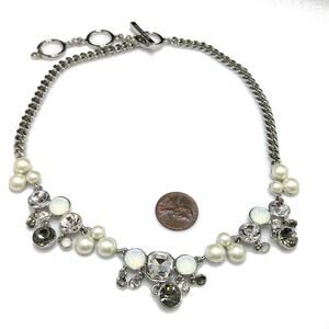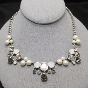 Vintage Givenchy Faux Pearl Rhinestone Necklace, Rhodium Plated, 1990s Jewelry