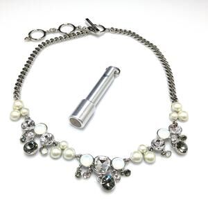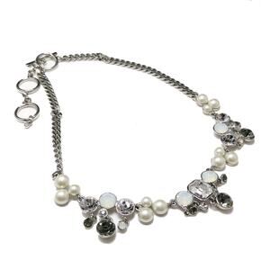 Materials: Faux pearls, opalescent & clear rhinestones, rhodium plating
