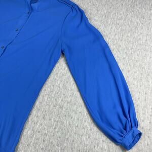 Vintage Givenchy For Chesa Mother Of Pearl Button Up Blouse Blue Size 6 Pleated