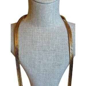 Vintage Givenchy GG Gold Plated Herringbone Chain Necklace 30"
