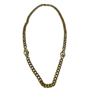 Vintage Givenchy -Gold Crystal Logo Link Chain Necklace 24”