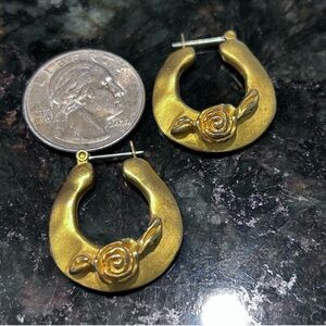 Chic gold earrings with rose accents. Ideal for a stylish touch.